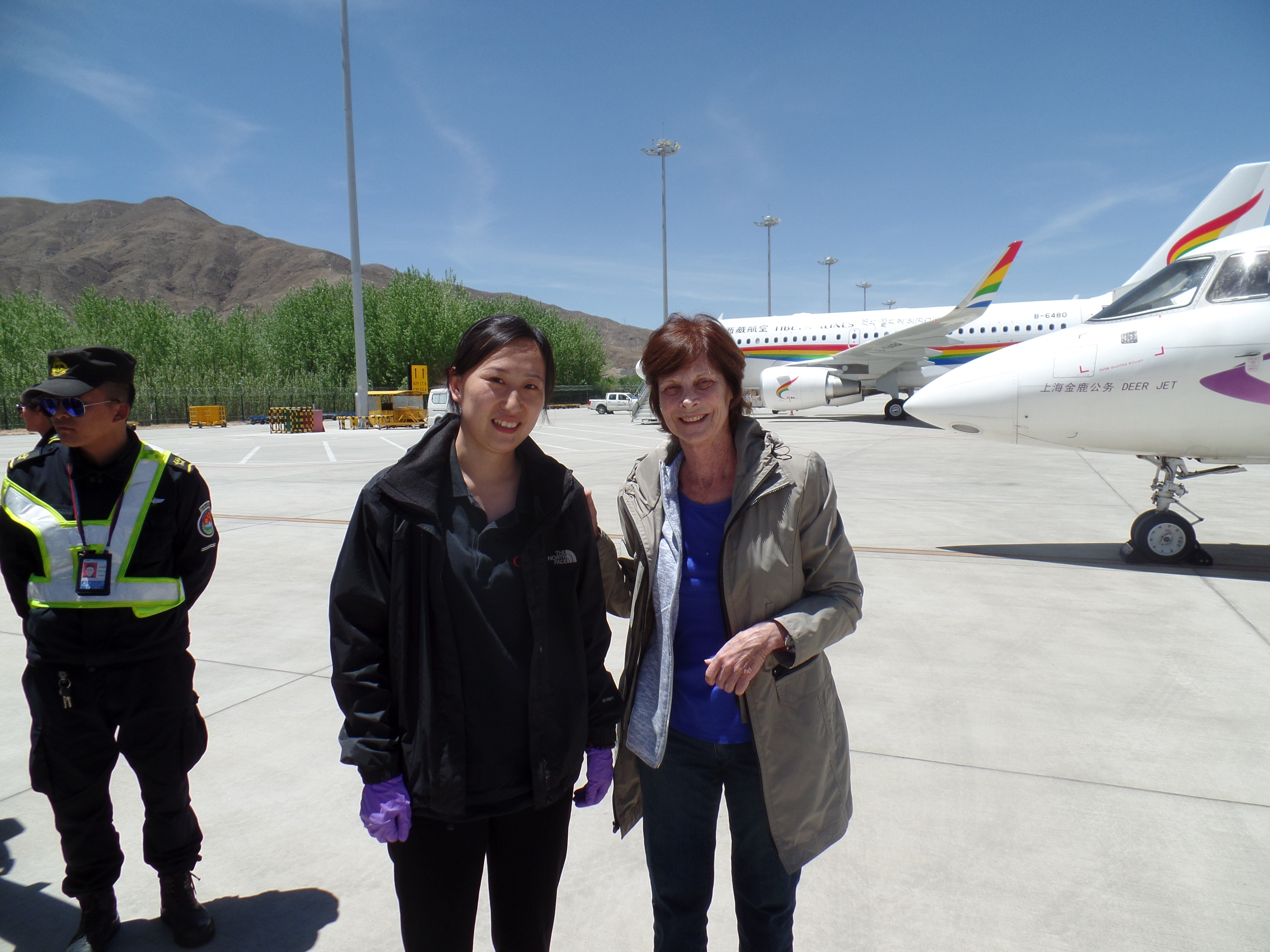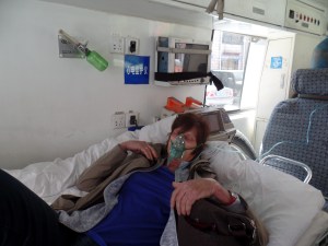 “Relaxing” in the ambulance en route to the Lhasa airport.