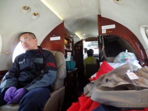 Air Ambulance doctor inside the Hawker Beechcraft 800.